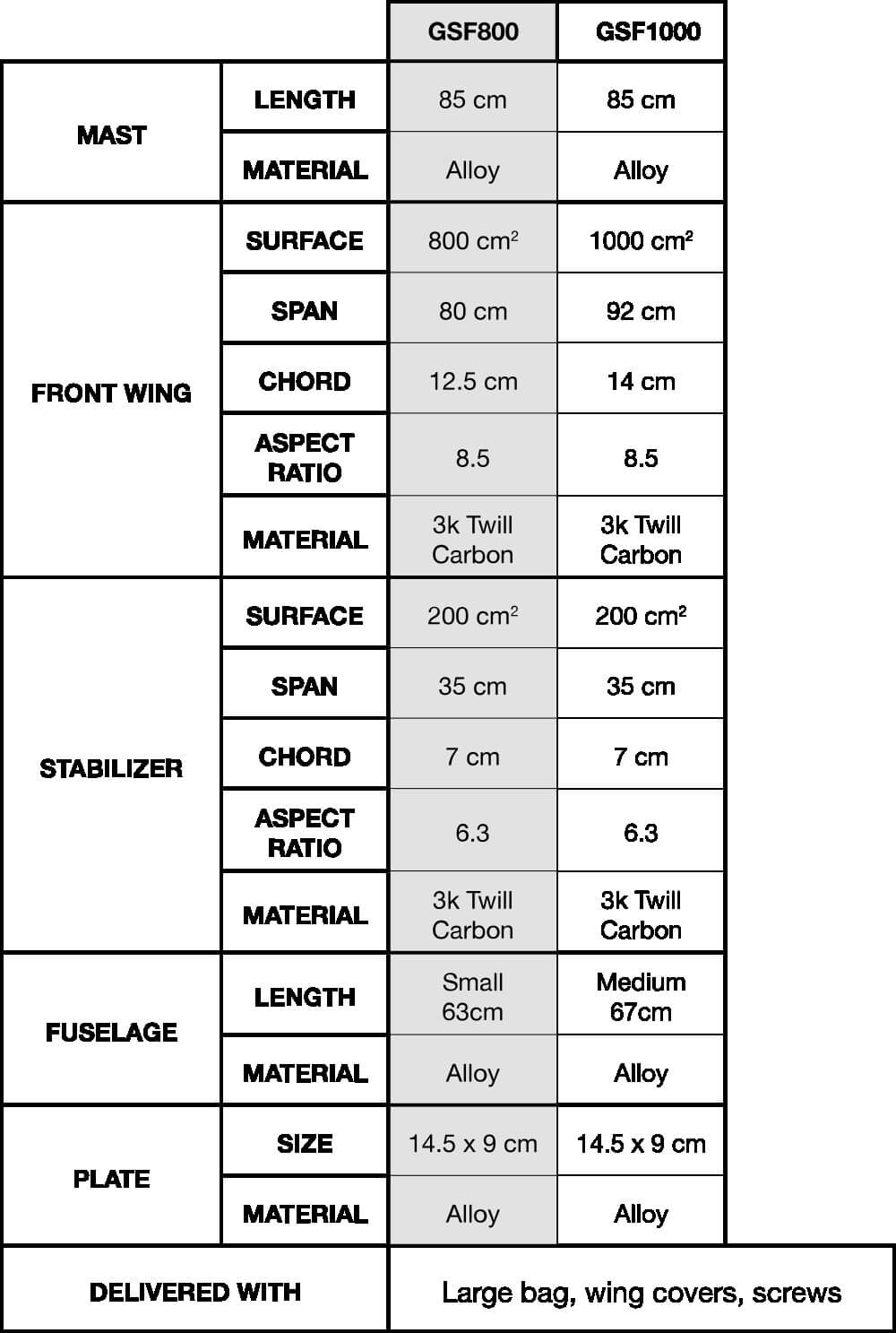 | Comes with | Bag for mast and wings, Foil's mast mountings |